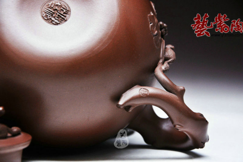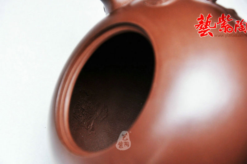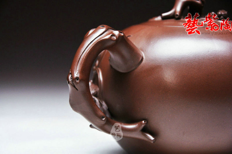 特点:泥色成熟稳重、端庄肃穆,作品大小皆宜,呈棕紫色调,养成后壶身素净,拙朴之中有浑圆气象。
