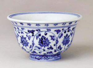 历代文献记载的古瓷名器,也往往以小巧而著称于世:晋、唐之茶酒具及文具,五代柴窑器和秘色器,宋代汝、官、哥窑器,明代永乐青花压手杯和成化斗彩鸡缸杯,清代康雍朝的珐琅器等。